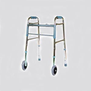 Складные ходунки с двумя передними колесами 125 мм, жесткой фиксацией с помощью центральной кнопки, регулируемые по высоте.